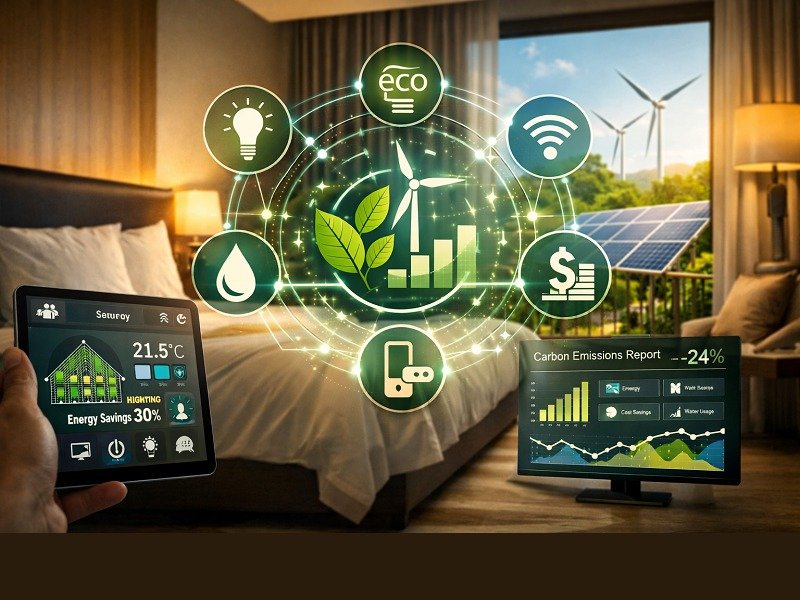 ¿Cómo puede un hotel reducir su impacto ambiental si sus sistemas de energía, acceso, operaciones y gestión de habitaciones no…